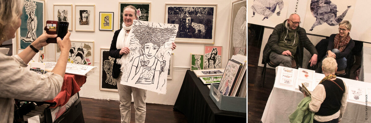 Ruim zestig grafici, voornamelijk uit Duitsland en Nederland, tonen hun nieuwste werk. Ik ook, in stand nr. 52. Met 10 prenten en een pentekening. Ook prachtig ingelijst te koop, met UV-werend glas.